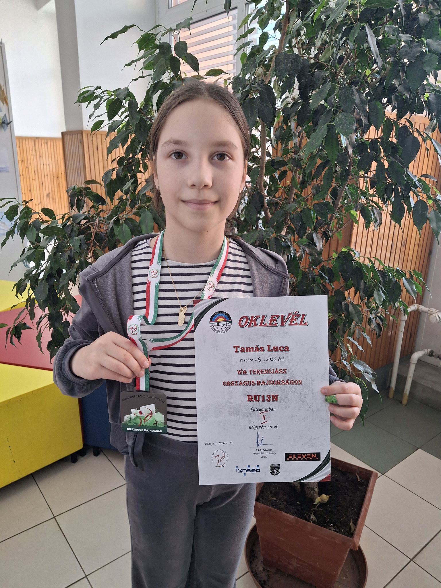Tamás Luca 4.a osztályos tanulónk március 14-én Országos teremíjász bajnokságon vett részt Budapesten, ahol kategóriájában országos 2. helyezést ért el.