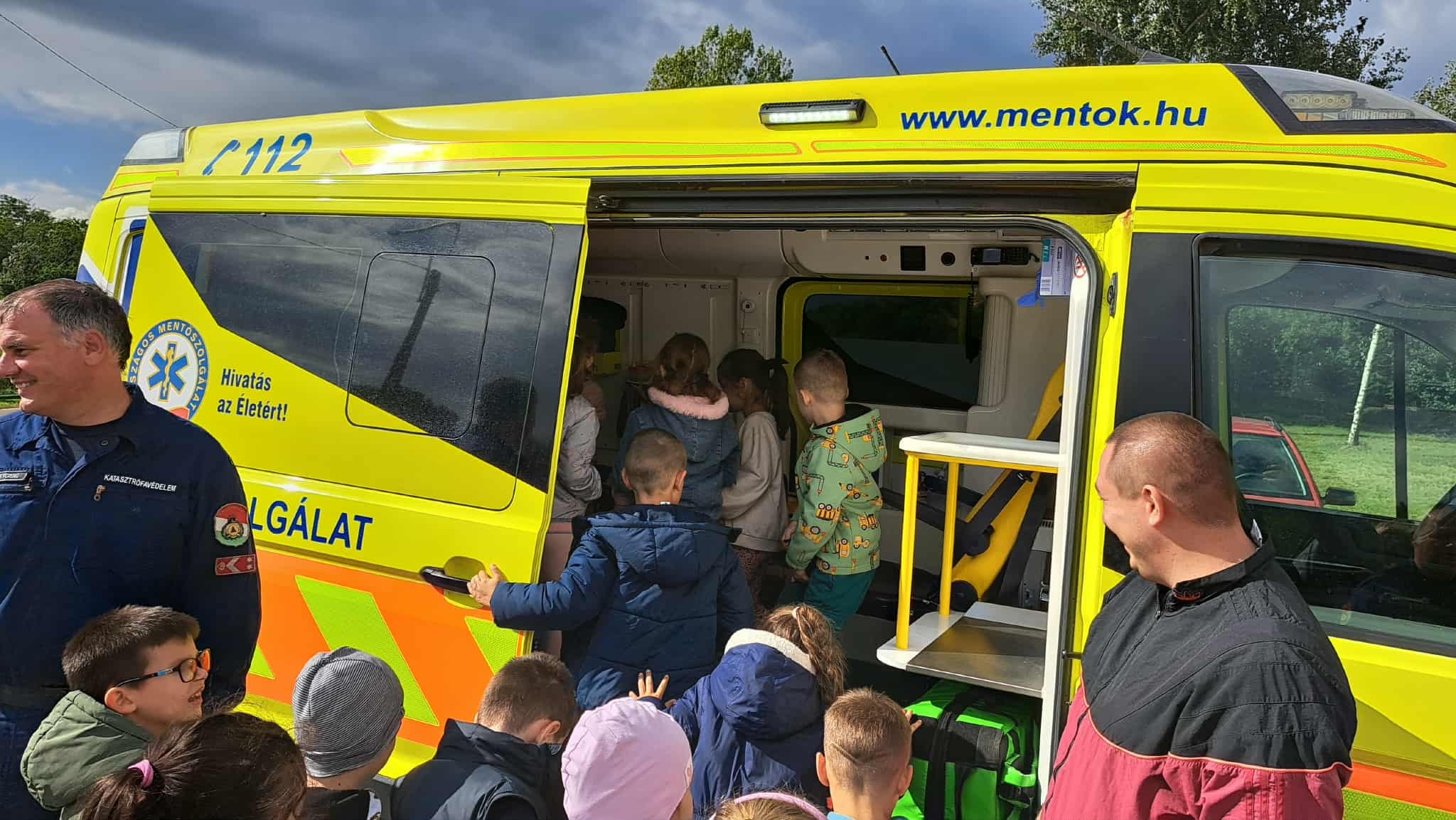 A hétfői pályaorientációs napon az 1. a és 1. b osztály a nyíradonyi Katasztrófavédelmi Őrsön tett látogatást, ahova sikerült meghívni a Hajdúhadházi Rendőrkapitányság járőreit és bűnügyi helyszínelőjét, valamint az Országos Mentőszolgálat munkatársait Debrecenből.